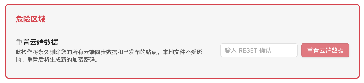 进入设置页面,找到重置数据栏,输入 RESET 字样,点击重置云端数据按钮,进行重置。